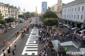 Sule Pagoda Road during the protest in Yangon, Myanmar, 18 February 2021. Photo: Mizzima