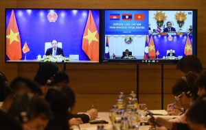 Vietnam’s Prime Minister Nguyen Xuan Phuc, Cambodia’s Prime Minister Hun Sen, and Thongloun Sisoulith, General Secretary of the Lao People’s Revolutionary Party and Prime Minister of Laos exchanged talks at a tri-lateral meeting held online on March 10.
