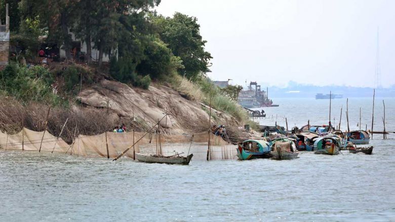 Fishing boats on the Mekong River in Phnom Penh’s Chroy Changvar district in February. Hong Menea