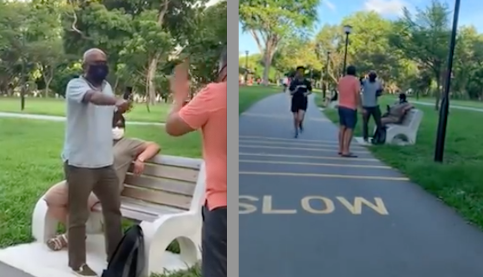 He then pointed out that the man was not wearing his mask. “I’m not talking to you. You are not wearing your mask. You must maintain a safe distance,” he was heard saying.