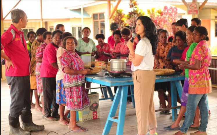 Tempeh to the world: Wida Winarno leads a tempeh-making workshop in Sorong, Papua. (JP/Courtesy of Driando Ahnan-Winarno)