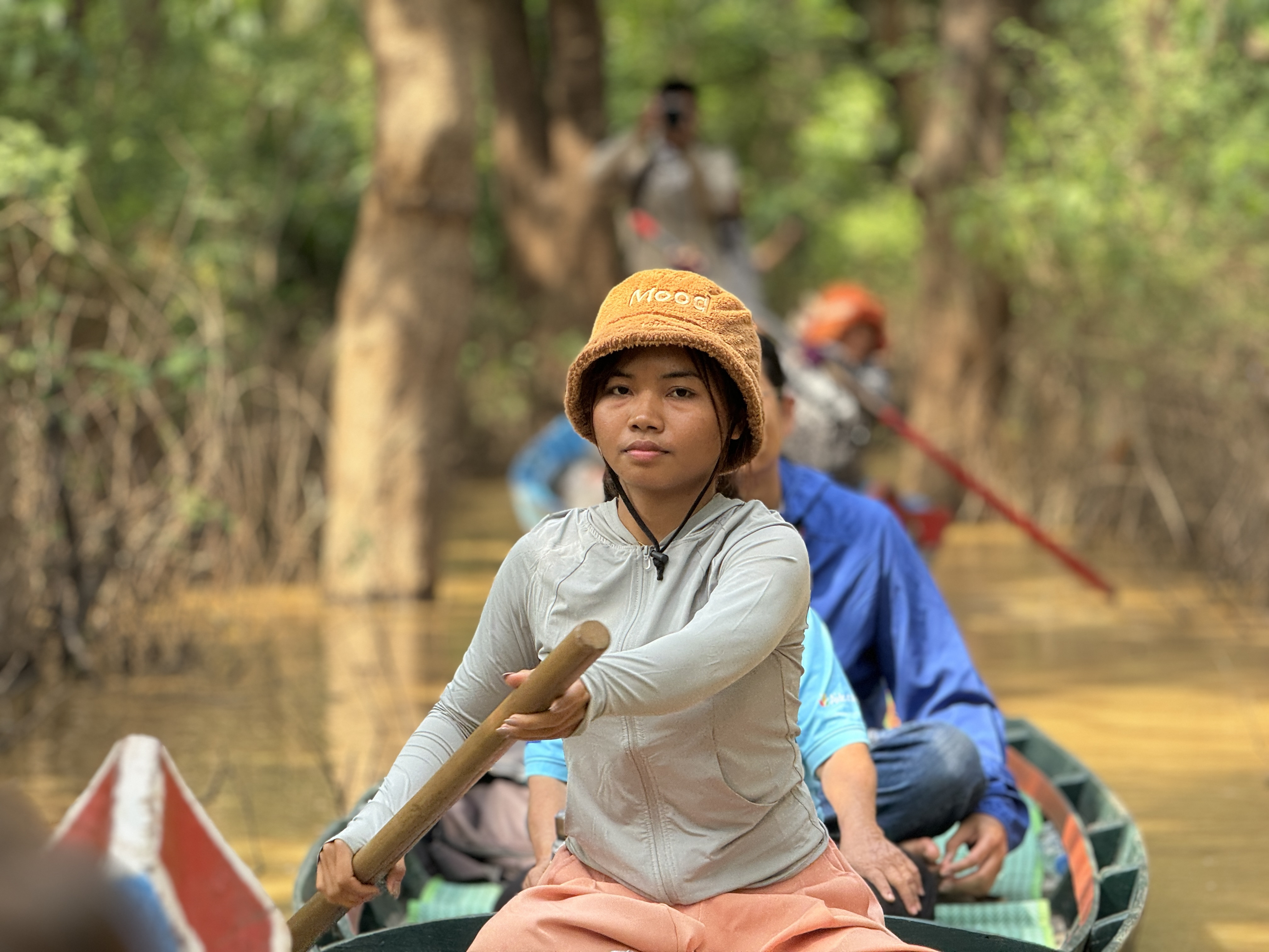 She tries to balance a demanding university course load with a job that starts early. Sovanna’s weekdays begin at 7 am, ferrying tourists through the magical floating mangrove forest of Tonle Sap Lake, all while attending classes on the weekends.