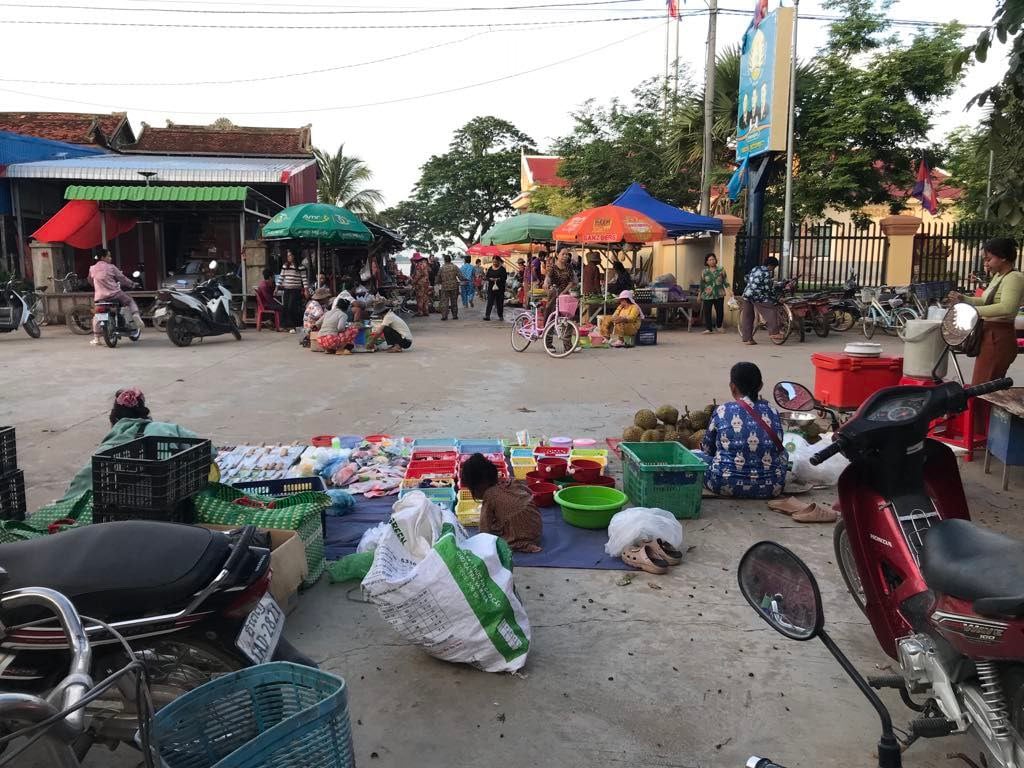 “There is a market every day from around six in the morning until midday. There are no stalls, only a kind of mat laid out on the ground. I gather there is a rental fee to be paid to officials.”