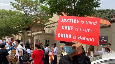 By Nan Lwin THE IRRAWADDY Mon, February 15, 2021 Anti-coup protesters hold placards at the Chinese Embassy in Yangon on Monday. / Nan Lwin / The Irrawaddy YANGON — China’s […]
