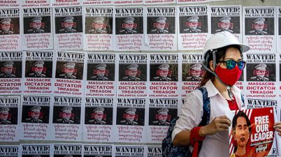 By The Irrawaddy Tue, February 9, 2021 Riot police man barricades while soldiers stand at the ready behind them, as a large crowd of anti-coup protesters gathers in Yangon on […]
