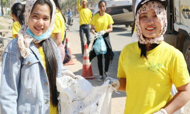 Cambodia female youth group running 30-day cleaning campaign in Preah Sihanouk